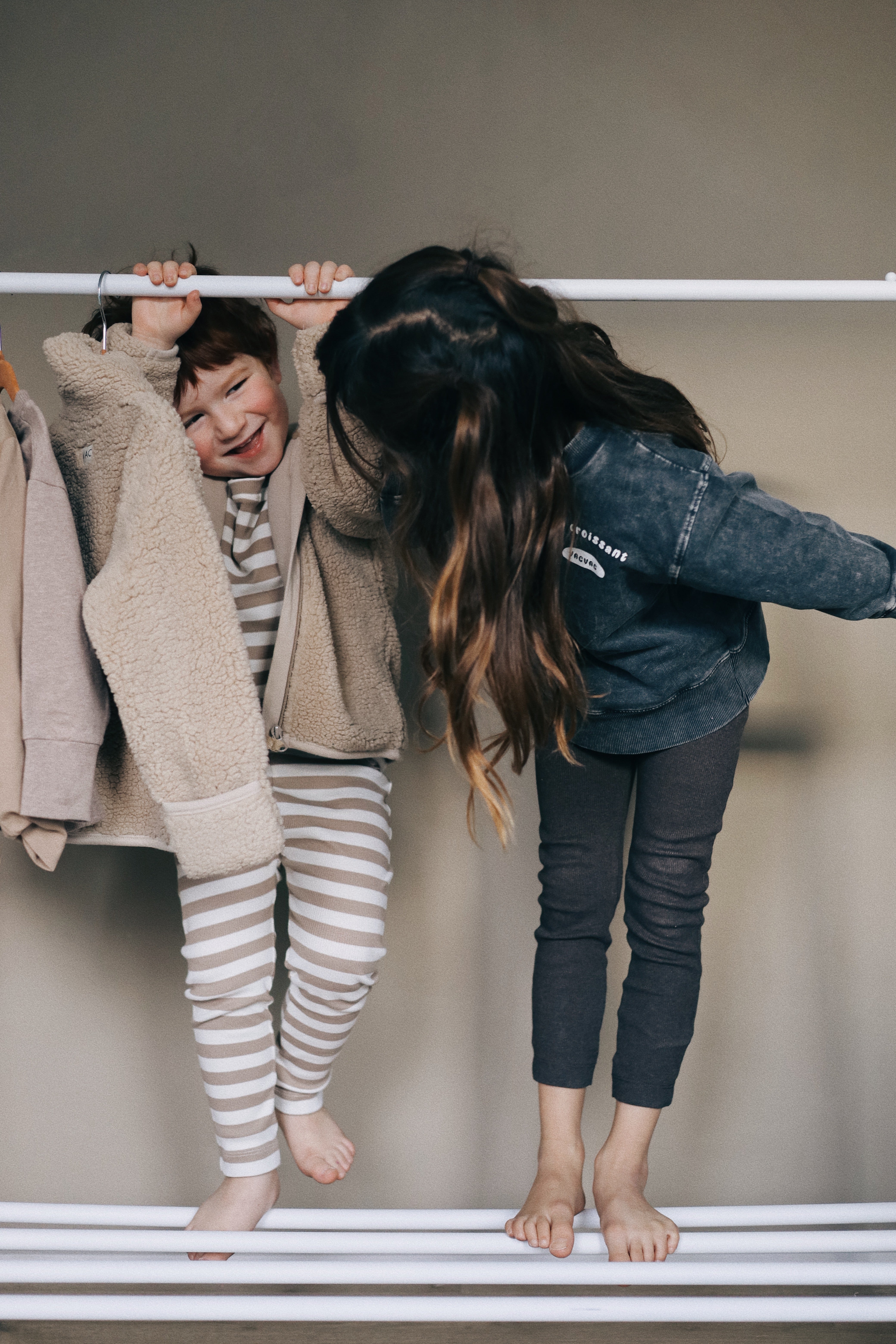 Wir produzieren Kleidung von hoher Qualität für eine lange Lebensdauer. Wir testen unsere Materialien und Stile sorgfältig, damit wir wissen, wie sie z. B. funktionieren. waschen und spielen. Obwohl wir jeweils eine Jungen- und eine Mädchenkollektion führen, sind alle unsere Designs so konzipiert, dass sie geschlechtsübergreifend verwendet werden können – und somit problemlos für ein mögliches jüngeres Geschwisterchen aufbewahrt werden können.