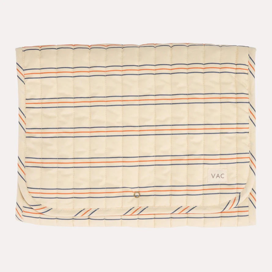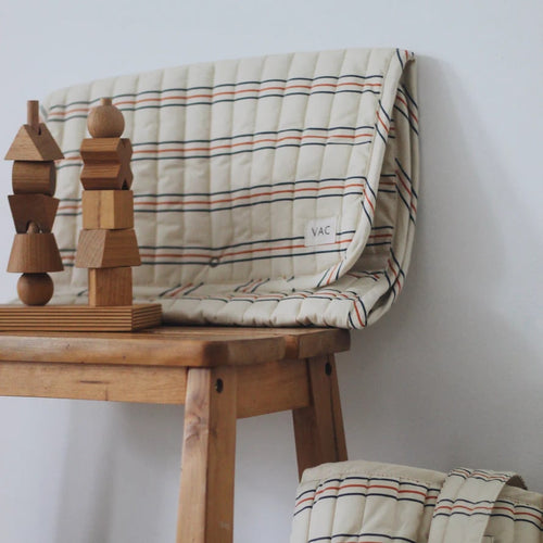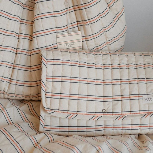 Gesteppte Außenseite mit praktischen Aufbewahrungsmöglichkeiten innen für z.B. Feuchttücher, Windelbeutel sowie eine Tasche für Windeln, Kleidung usw. Dank des elastischen Verschlusses bleibt alles an seinem Platz!