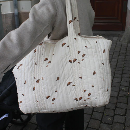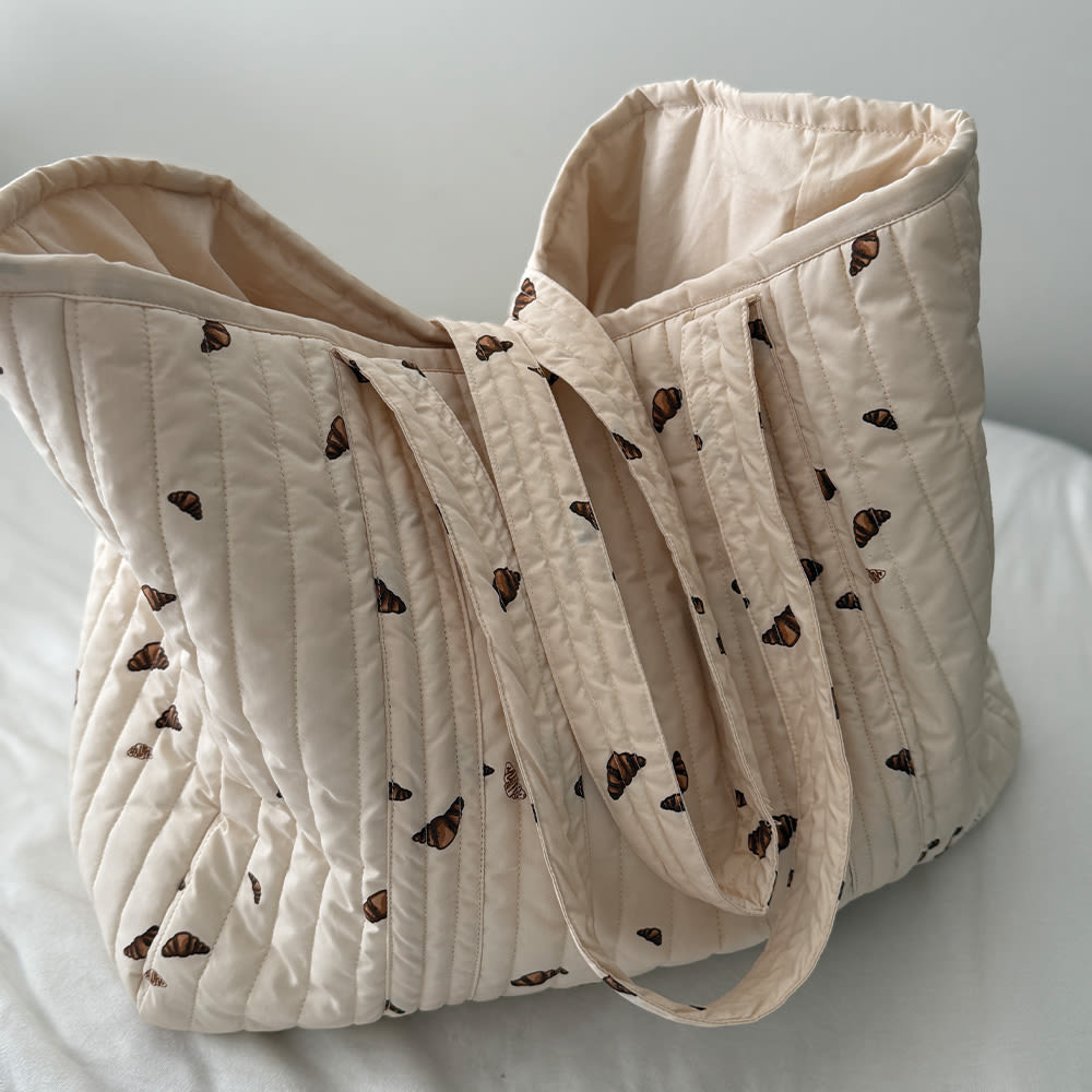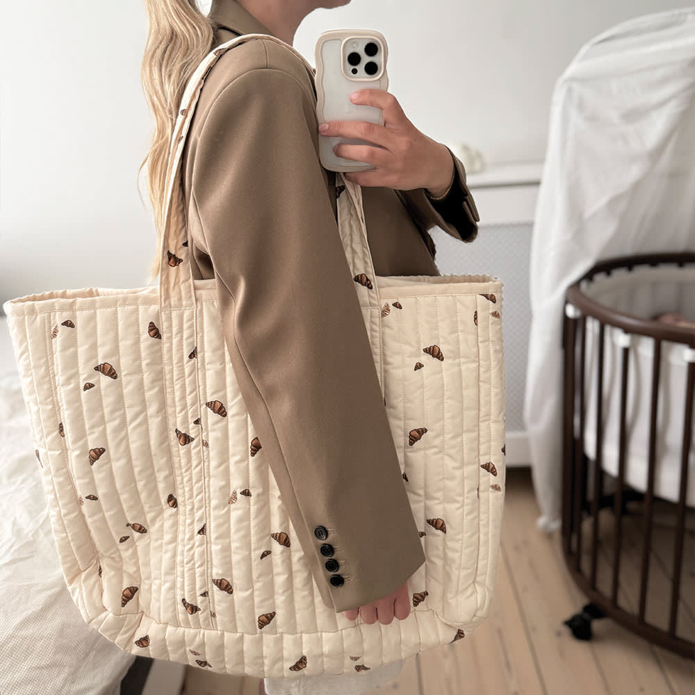 Die BILLE MUMMY BAG im Mini-Croissant-Design ist sowohl praktisch als auch stilvoll – die perfekte Tasche für vielbeschäftigte Eltern! Die Tasche ist außen gesteppt und bietet viel Stauraum für alles, was Sie unterwegs benötigen. Innen gibt es vier Taschen mit elastischen Verschlüssen, damit Sie Ihre Sachen einfach organisieren und schnell darauf zugreifen können.