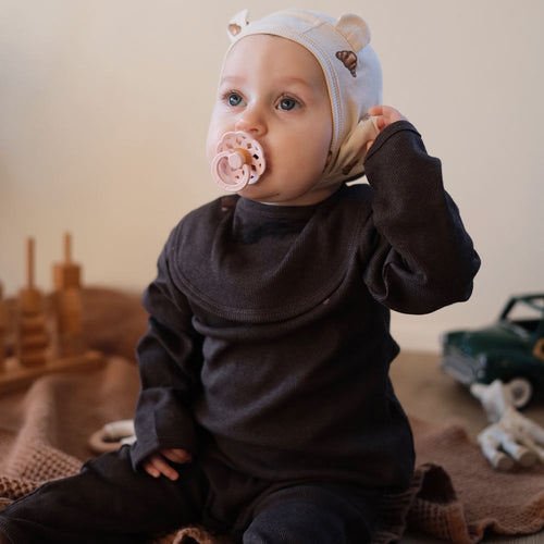Der CARLET Anzug mit langen Ärmeln und dem charakteristischen, gestickten Croissant ist Teil unserer Basic-Serie. Er ist weich und bequem, perfekt für Spiel und Entspannung.