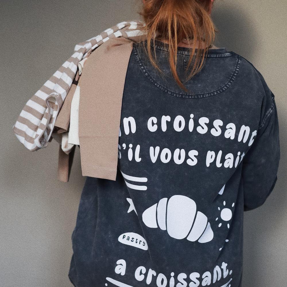 Rimont MUMMY ist ein langärmliges Sweatshirt mit einem kleinen Print auf der Vorderseite und einem größeren Print auf der Rückseite. Der Print enthält das Zitat "un croissant s'il vous plaît". Die Farbe ist ein gewaschener Jersey.