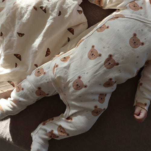Der Stoff hat eine schöne Rippenstruktur und ist GOTS-zertifiziert, was eine biologische und nachhaltige Produktion garantiert. Er besteht aus 95% Bio-Baumwolle und 5% Elastan, was eine weiche und dehnbare Passform bietet, die für dein Baby angenehm ist.