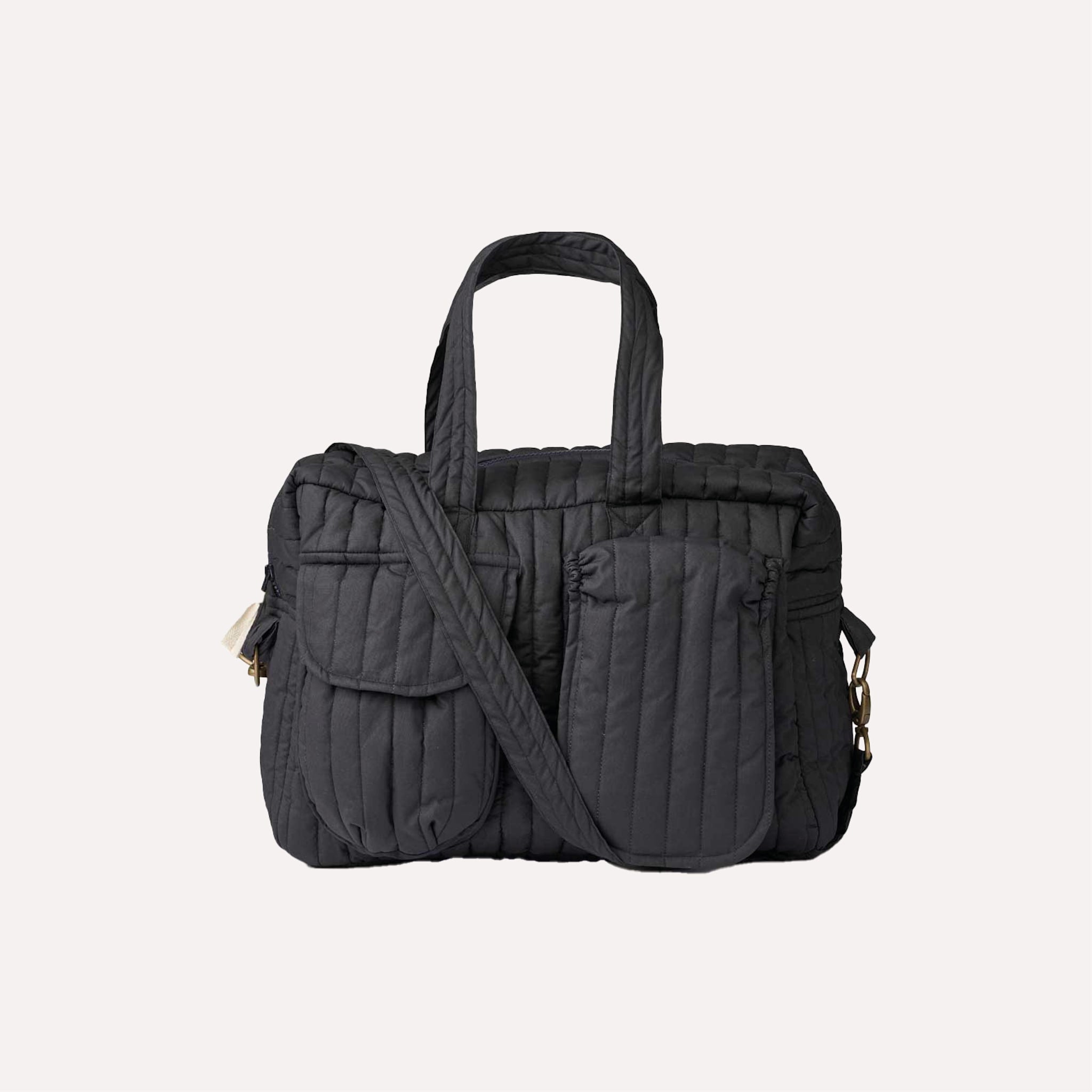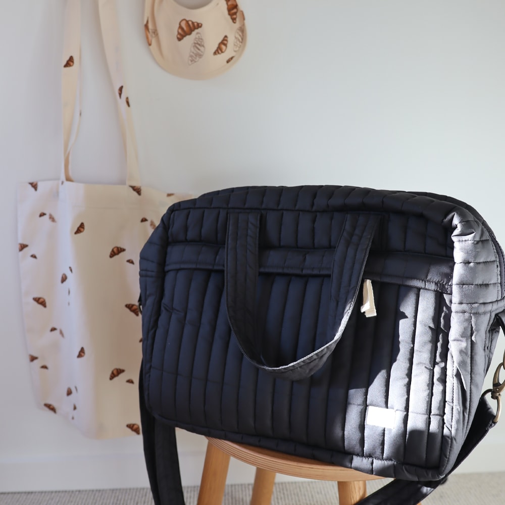 DONNA ist eine gesteppte Wickeltasche im zeitlosen Design. Sie verfügt über verschiedene Taschen, 3 außen und 3 innen, darunter eine für Feuchttücher. Die beiden Fronttaschen schließen sicher mit Magneten und können mit nur einer Hand geöffnet und geschlossen werden. Die übrigen Taschen schließen mit Reißverschlüssen, und zwei Innentaschen haben einen elastischen Verschluss.
