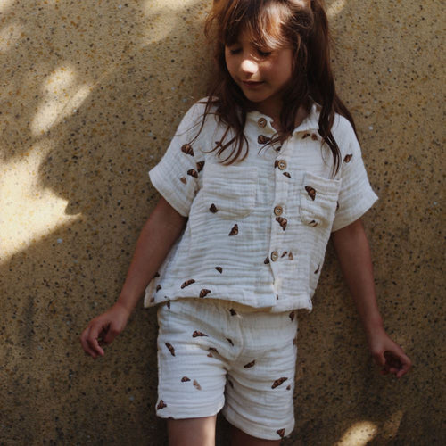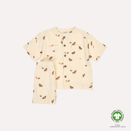 Die VIBBER SS-Pyjama aus doppellagigem Musselin ist sowohl leicht als auch bequem mit kurzen Ärmeln und Beinen. Sie hat eine lockere Passform und einen elastischen Bund für zusätzlichen Komfort.