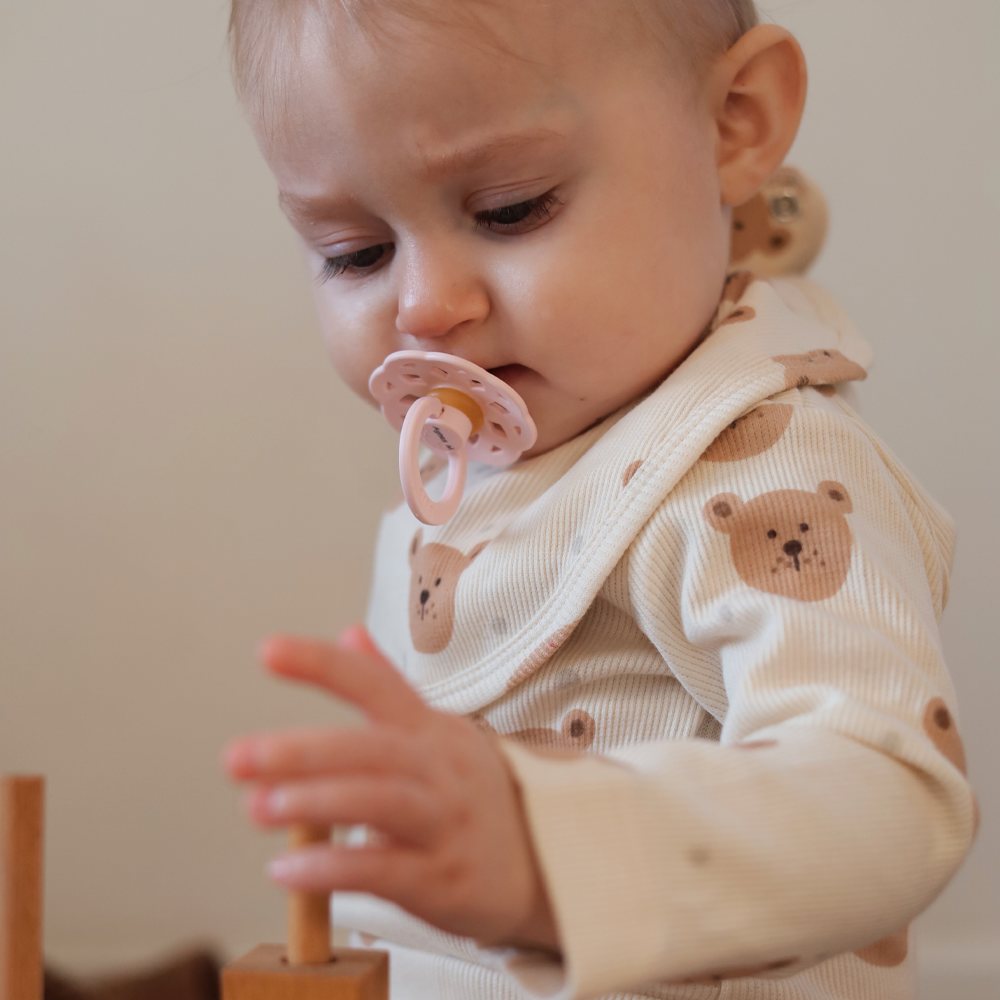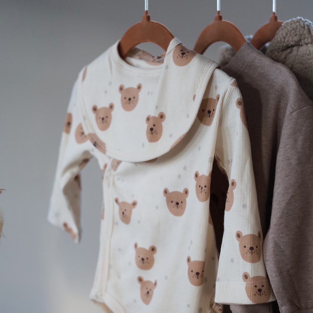 Das Lätzchen besteht aus 95 % Bio-Baumwolle und 5 % Spandex.