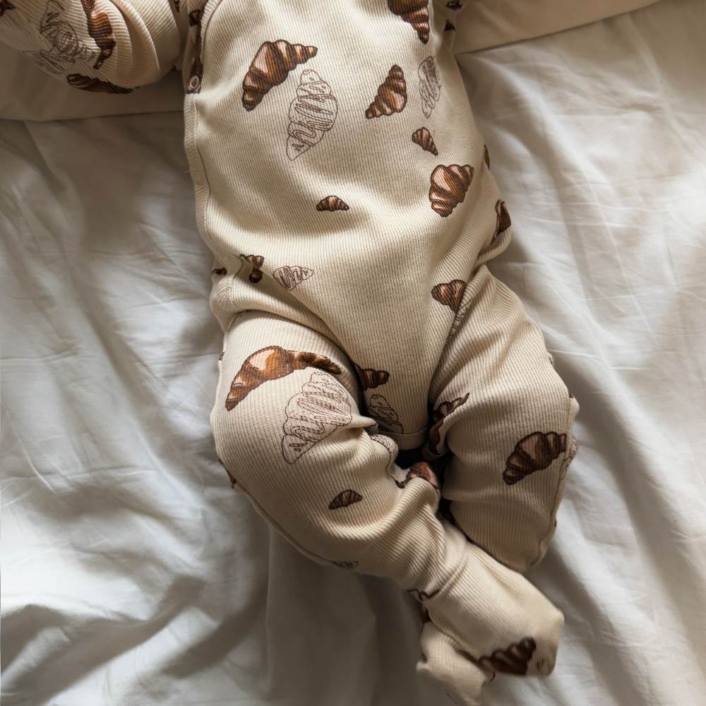 Kvaliteten har en fin ribstruktur og er GOTS-certificeret, hvilket garanterer økologisk og bæredygtig produktion. Den består af 95% økologisk bomuld og 5% elastan, hvilket giver en blød og strækbar pasform, der er komfortabel for din baby.