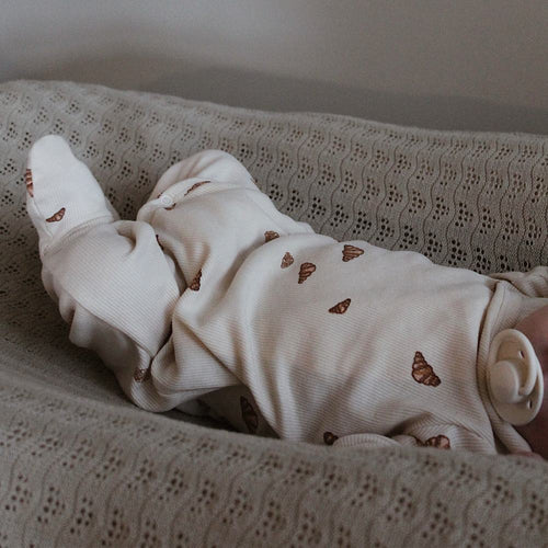 TOULON New Born Crossover Suit er den perfekte løsning til nem og skånsom påklædning af din baby. Den smarte crossover-design gør det muligt at klæde din lille én på, uden at trække stoffet over det sarte hoved. Suiten har fødder, hvilket sikrer, at babyens fødder holdes varme hele dagen.