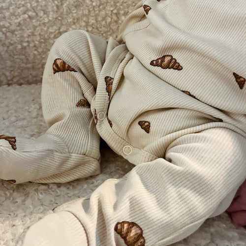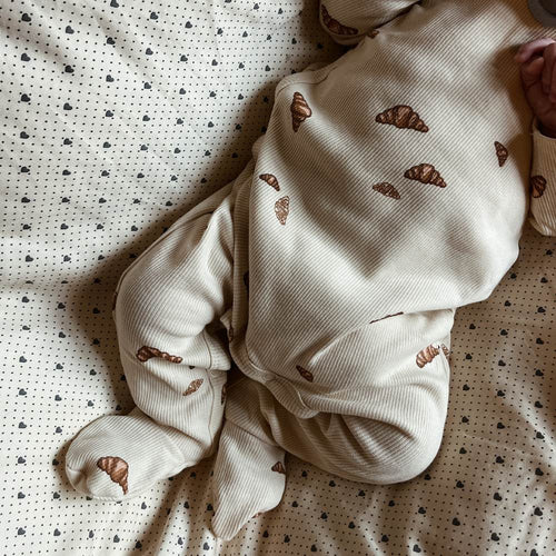 Kvaliteten har en fin ribstruktur og er GOTS-certificeret, hvilket garanterer økologisk og bæredygtig produktion. Den består af 95% økologisk bomuld og 5% elastan, hvilket giver en blød og strækbar pasform, der er komfortabel for din baby.