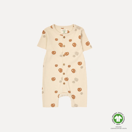 HARPER suit kortærmet dragt er en smørblød ribdragt i en fin beige nuance, pyntet med små pretzel-detaljer, der giver et sødt og legende udtryk. Den bløde ribstruktur sikrer både komfort og bevægelsesfrihed hele dagen.