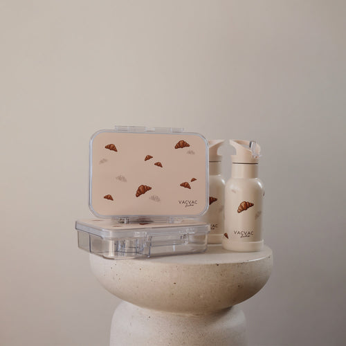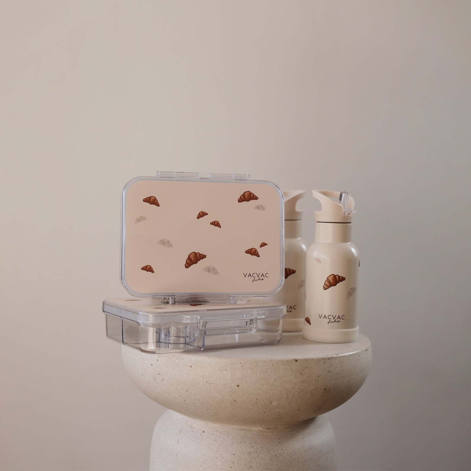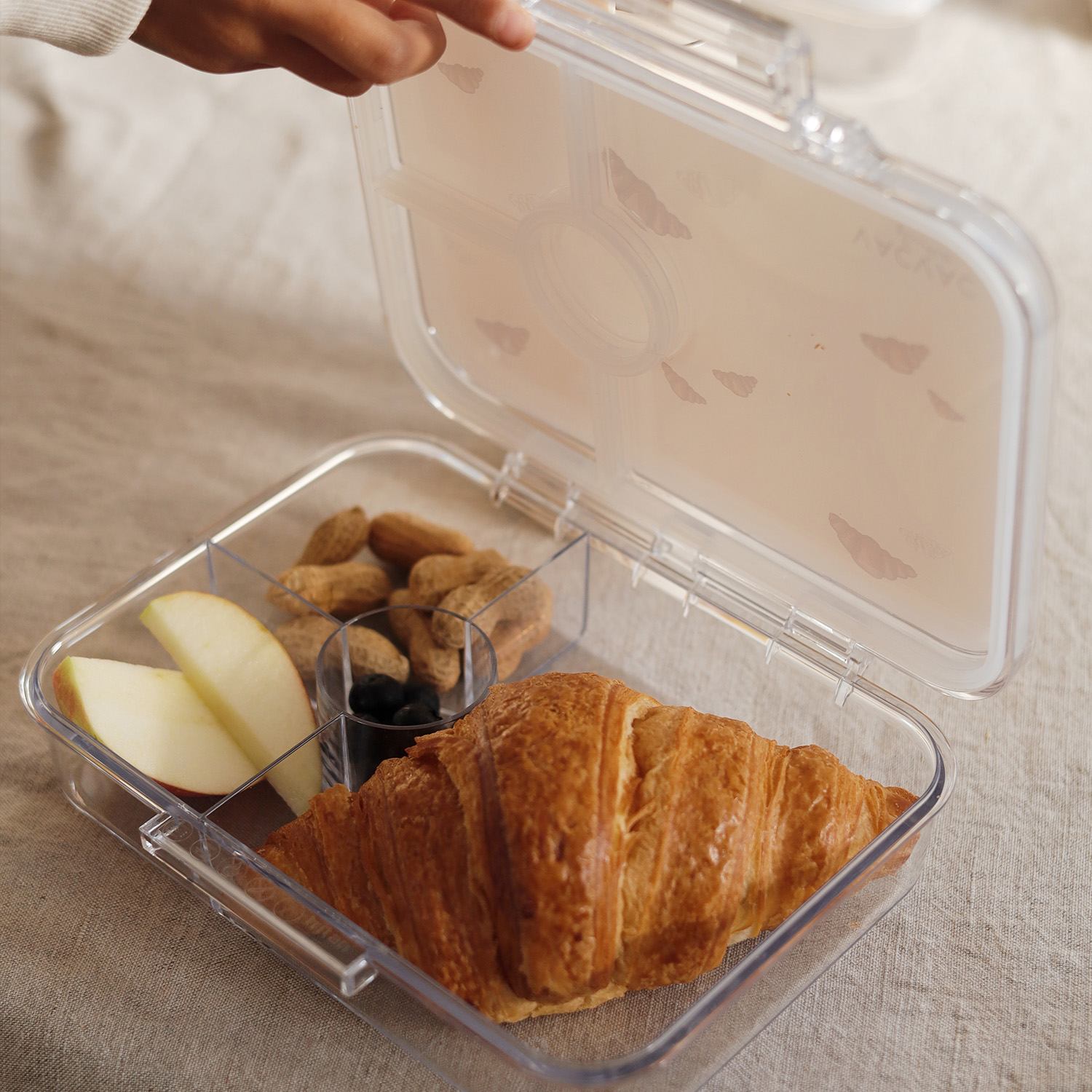 Vores madkasse i bestsellende Croissant Mini print eller det nye Belle Noeud sløjfeprint gør frokost og snacks til en leg. Lavet i 100% Tritan er den både robust, holdbar og nem for små hænder at åbne og lukke. Den smarte silikonetætning holder maden frisk og sikrer, at madkassen er helt tæt – perfekt til både skole, dagpleje eller udflugter.